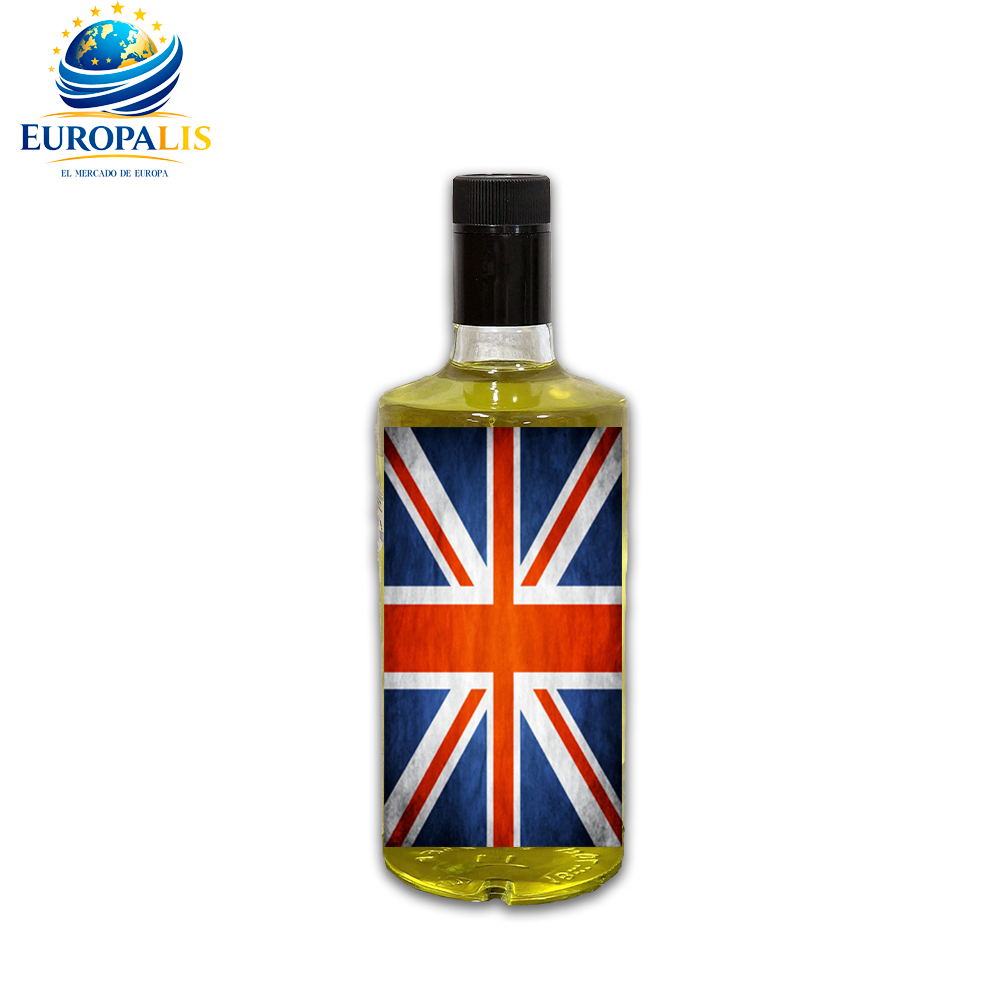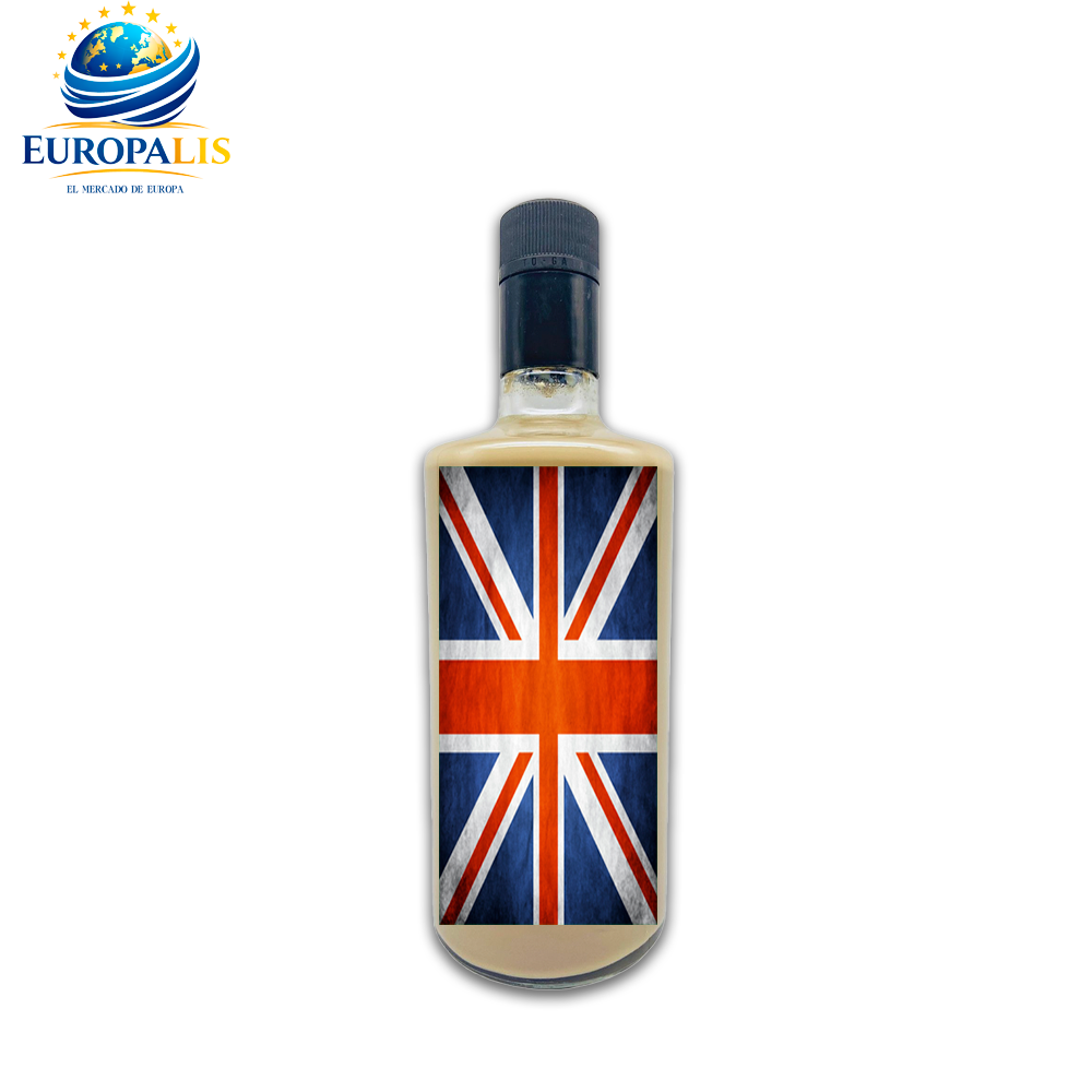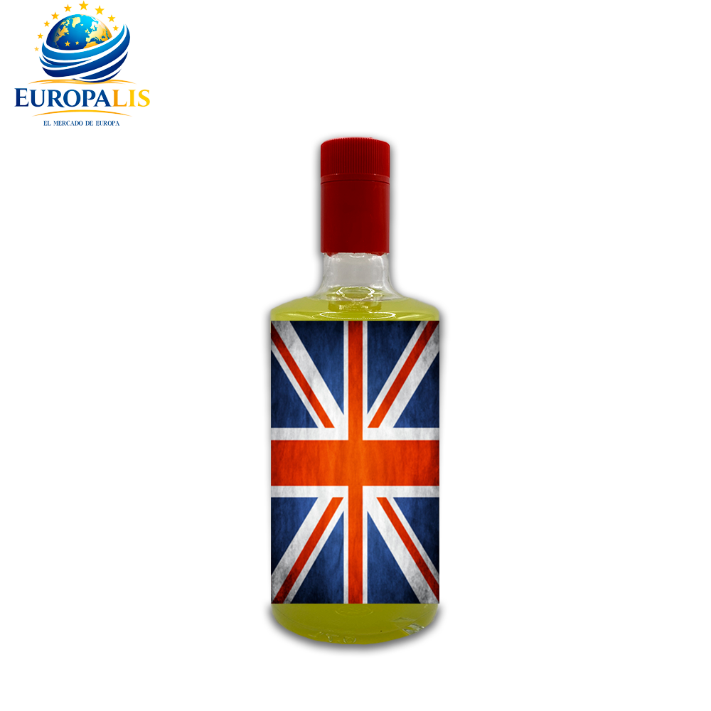 Cada botella con etiqueta exclusiva de la bandera de Gran Bretaña. Presentación elegante que destaca en cualquier vitrina.